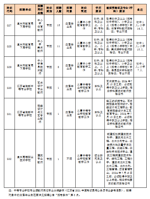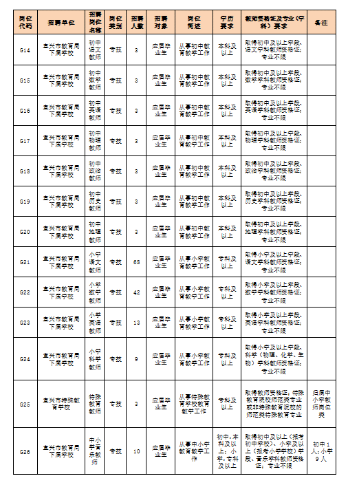 4.教师资格证:报考普通中小学教师岗位的,须取得符合任教学段和学科要求的教师资格证或尚未取得但须承诺于2021年7月15日前取得符合任教学段和学科要求的教师资格证;报考职业学校专业课教师岗位的,须承诺于2024年7月15日前取得符合任教学段和学科要求的教师资格证。