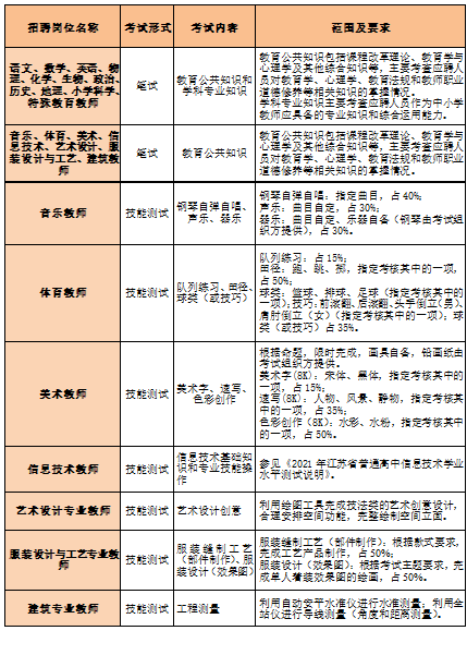 2.2021年江苏省宜兴市教育系统公开招聘事业编制中小学教师第一阶段考试形式、内容一览表
