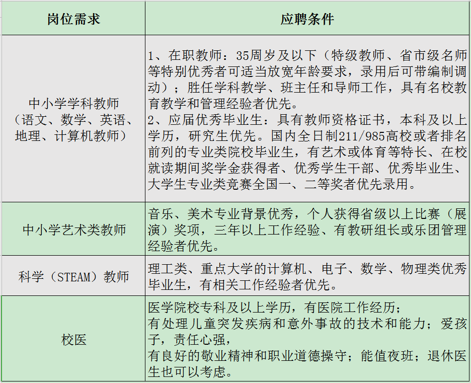 3.本招聘需求对优秀教师和优秀大学毕业生长期有效。